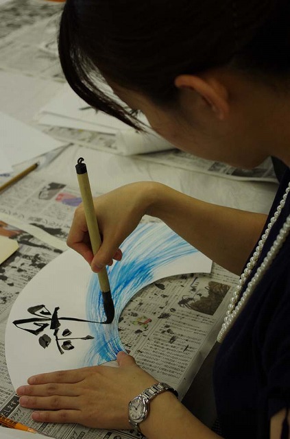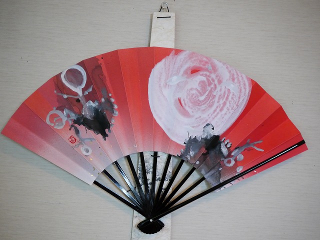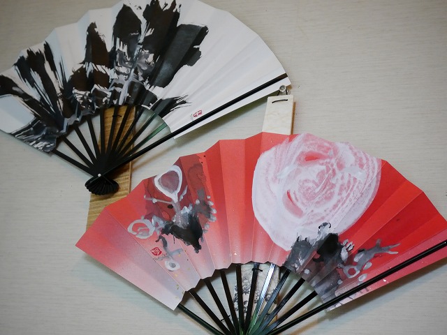 両面に作品を書いた、飾り扇。