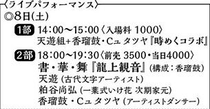 今回、天遊は、2部「書・華・舞」で、とんでもない仲間たちとのライブをやります。
